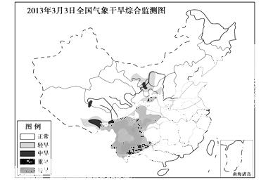 4、单选题 2013年春我国部分地区发生了严重的干旱。读图,回答下列小题。