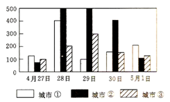 3、单选题 2005年4月28—30日,华北地区经历了一次强沙尘天气,造成许多地方空气污染指数(APl)增高,主要污染物是可吸入颗粒物。读图,回答下列各题。