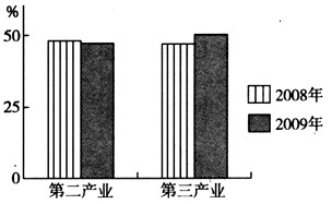 1、单选题 下图为我国东南沿海某城市2008年和2009年两大产业结构图,读图回答1~2题。