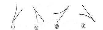 3、单选题  该图(虚线表示目标方向,实线表示实际方向)中,表示北半球物体水平运动的是(?)