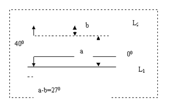 【小题1】解题的关键是理清甲、乙两地每天的正午太阳高度之差(△H)与两地的纬度、太阳直射点的纬度之间的关系。正午太阳高度=900-纬度差,两地的正午太阳高度之差也就是各自离当天太阳直射点所在纬度之差的差。当太阳直射点位于两地纬线正中间的纬线时△H为0,当太阳直射点在两地纬线之间移动离其中一点的纬度最近时,△H绝对值最大,当太阳直射点在两地纬线之外移动时△H不变。根据图中△H的变化,△H最小为0时,说明太阳直射点位于两地正中间,所以甲、乙两地的纬度垮了南北回归线之间的区域,一年内甲、乙两地每天的正午太阳高度之差大多数时间为正值,说明甲地纬度更低,应位于南北回归线之间,△H最大值为400且一段时间不变,说明直射点离甲地近并在其外侧移动,甲、乙两地跨400。△H最小值是-27,只有一个值,也就是直射点只能有最接近乙地的一天,不能移动到乙地外侧,这一天应该是直射回归线,乙地离该回归线的纬度比甲地近270。由此可以推算出甲、乙两地的纬度值可能是10°S、30°N(或10°N、30°S)。故选B。(如下图L2、L2分别代表甲、乙的纬线)