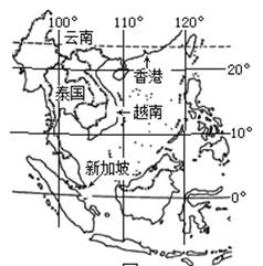小题3:读图可以看到,泰国和越南距离新加坡比云南近,运输费用少,所以D对。三地都是经济水平低的地区和国家,劳动力价格都较低,没有优势,A错。都是位于热带地区,热量充足,差异不大,B错。三地的地形起伏都较大,品种丰富,C错。