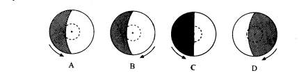 1、单选题 下列图示(阴影表示黑夜)表示大致是12月22日日照情况的是 ( )
