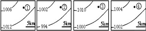1.四图中比例尺相同,单位距离气压梯度越大风力越大,图中③地等压差最大,气压梯度最大,风力最大,④地等压差最小,气压梯度最小,风力最小。故①②③④四地的风力由大到小的排序是③>②>①>④。
