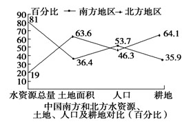 2、单选题 读中国南方和北方水资源、土地、人口及耕地对比图,回答1—2题。