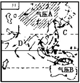 5、综合题 读下面季风环流示意图,回答下列各题。(每问2分,共20分)