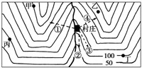 小题1:图乙景观示意中与该等高线图相匹配的是 (?)?