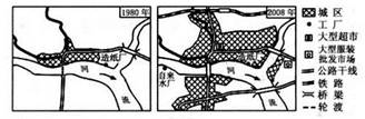 2、单选题 该为“某城市空间形态变化示意图”。读图完成问题。