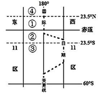 小题1:该船5分钟后通过了国际日期变更线,下列日期和区时在图示范围内不可能的是?