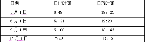 2、单选题  菊花是一种短日照花卉,其开花期对日照时长非常敏感。某品种菊花当日照时长低于10小时30分才进入开花期。下表为武汉市不同日期的日出日落时间(北京时间)。回答下列各题。
