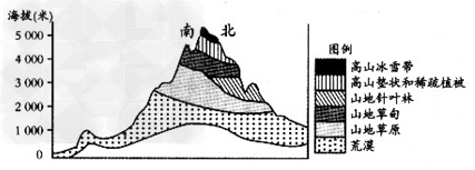 5、综合题 高山林线指山地森林分布的最高界限。读我国高山林线海拔等值线分布示意图以及阴山山地植被垂直分布示意图,回答问题。(11分)