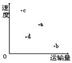 小题1:对比四种运输方式,运速最快的是空运;运量最大的是水运;运量较小,运速较慢的是公路;运速较快,运量较大的是铁路,所以,字母a、b、c、d所代表的交通运输方式分别是铁路、水运、空运、公路。故选C。