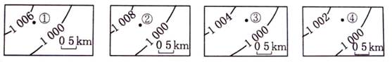 5、单选题 下面四幅等压线分布图中,①②③④四地风力由大到小的正确排序是?(?)