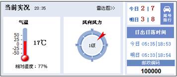 4、单选题 下图为我国华北某城市某日天气状况的网络截图,据此回答下列各题。