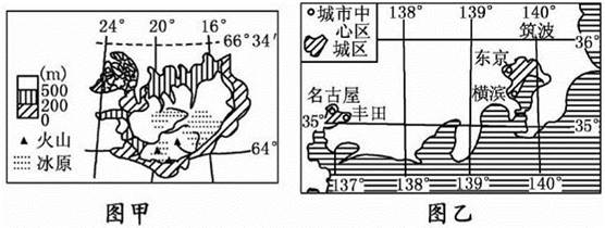 (1)图中所示国家:甲是?,乙是?。(4分)