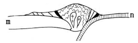 (2)乙地质构造是 ,顶部缺失的原因是 (2分)