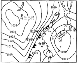 3、单选题 读亚洲局部区域某时刻海平面等压线分布图(单位:hPa),回答以下题。
