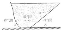 4、单选题 下图是“某天气系统的垂直剖面图”,其中甲(40°N,110°E)、乙(40°N,115°E)是近地面的两点,据此完成以下问题。