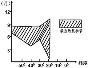 小题2:在30°N附近,却出现了欣赏季节变短的状况,其原因可能是( )
