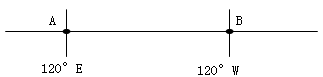 小题2:本题考查日期分界线。地球上的日期分界线有两条,一条是180°经线,另一条是0:00所在经线。根据全球处在同一日期,180°和0:00所在经线重合。B点地方时为0:00,北极附近出现极昼,太阳直射点的纬度为20°N,经度为0°。所以本题选择B选项。