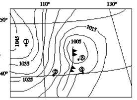 5、单选题 读我国某时刻海平面等压线分布图,可知此时