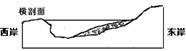 5、单选题 该图是北半球某条河的剖面图,据此判断该河流流向 ( )