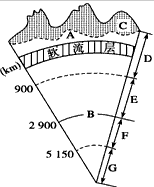 5、综合题 读“地球内部构造示意图”,回答下列问题。