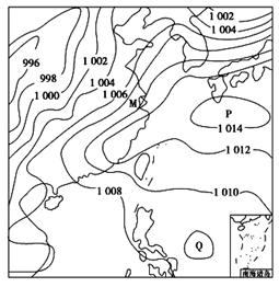 1.下列关于P、Q、M、N四点的说法,正确的是2.当P点所代表的气压中心长期控制我国时,下列关于我国北方地区的叙述,正确的是
