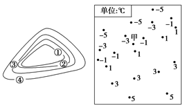 1、单选题 左下图为“北半球某地区冬季等压线分布示意图”(单位:hPa),气压数值①<②<③<④。右下图为“该地区局部气温分布图”。读图完成题。