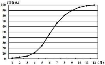 3、单选题 下图是南半球亚热带某地各月降水量百分比累计图。完成下列各题。