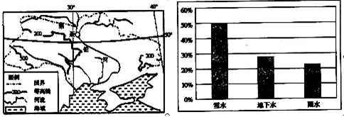 2、单选题 下面左图为乌克兰略图,下右图为第聂伯河及其支流的水源补给构成图。读图回答下列各题。