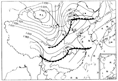 (3)图中北京地区在锋面M到来前,天气状况为________;锋面到来时,北京地区的天气状况是____________;锋面过去后,北京地区的天气状况将是____________________________________。