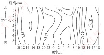 1、单选题  自谋城市市中心向南、向北分别设若干站点,监测城市气温的时空分布。监测时间为8日(多云)9时到9日9(晴)18时。监测结果如下图所示。据此完成问题。
