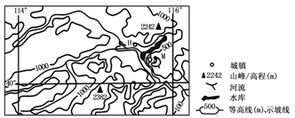 在湿润和半湿润地区的湖畔、河边和海滨,偶见规模较小的沙丘群,其形成的主要条件为所在地区沙源丰富、多风、植被稀疏。图中所示区域中,M处发育了规模较小的沙丘群;H县城附近是著名的风口,冬春季节风力尤为强劲;河流发源于黄土高原地区。