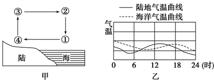 3、单选题  理论联系实践,学习有用地理是中学地理教学的主要出发点。例如,影视剧中往往让女主角面朝大海,海风吹拂下让头发向后飘逸以反映女主角的快乐心情。结合“北半球某滨海地区海陆环流图”(甲图)和“气温变化特 征图”(乙图),回答题。