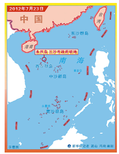 4、单选题 据中国之声《新闻纵横》报道,2013年7月24日是海南省三沙市正式挂牌成立一周年的日子。2012年7月24日,中国正式成立了海南地级三沙市,主要管辖西沙、中沙、南沙三个群岛中的200多个岛礁和沙滩及其200多万平方千米的海域,这是中国政府在南海行使主权、发展南海经济、维护中国领土完整的重大举措。三沙市的设立标志着中国对南海行政管理体制的调整和完善,具有特殊的战略意义和深远影响。读图完成下列问题。