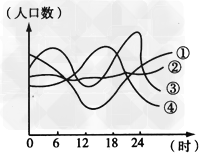 (3)A是该城的中心商务区,图中能反映A区人口日变化特点的是___________曲线。