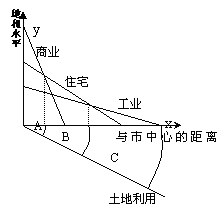 2、单选题 读“各类土地利用付租能力随距离递减示意图”,回答下面问题。(共16分)