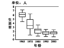 2、单选题 生育率是指一定年龄内每千名育龄妇女所生孩子数。下图是我国各省不同年代生育率分布的盒形图,盒内的分隔线为中位数,线段向上至最大值,向下至最小值。读后回答1-2题。