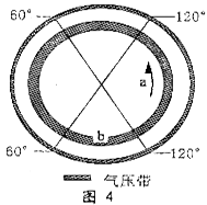 2、单选题 图为“以极点为中心的半球示意图”,图中箭头表示地球自转方向。读图回答下面问题