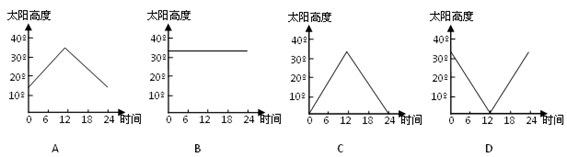 小题2:该观测站一年中正午太阳高度达到最大值那一天的太阳高度日变化曲线是?