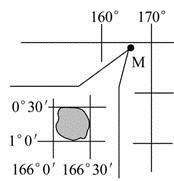 【小题2】图中①~④四地中,此日地方时6点最有可能看到海上日出的是 ( )