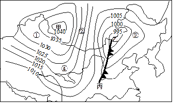 (2)图中乙—丙为?(冷、暖)锋,该锋面过境后,其天气状况是___?_______。