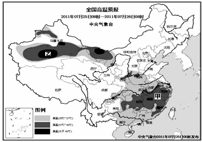 1.造成上图中甲区域高温天气的天气系统是2.上图中乙地气温高达40℃以上,其成因解释不正确的是