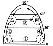 2、单选题  读北半球洋流模式示意图,完成以下各题