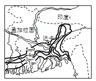 1、单选题 如图表示的是受到不同海平面升高影响的孟加拉国土地。读图,回答问题。