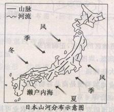 2、综合题 读“日本山河分布示意图”,并结合所学知识回答