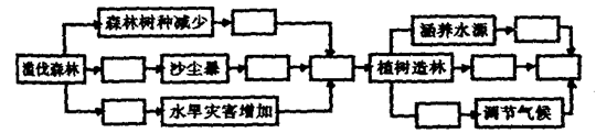 5、综合题 读下面滥伐森林与植树造林的环境变化模式图,回答下列问题