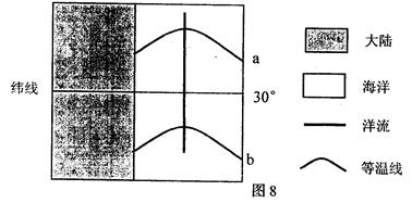 (2)该区域位于?半球,a、b两等温线温度较高的是?。(2分)