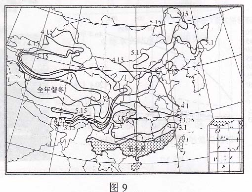 1.影响我国入春时间东西差异和南北差异的主导因素分别为2.图中等值线M的日期最有可能的是